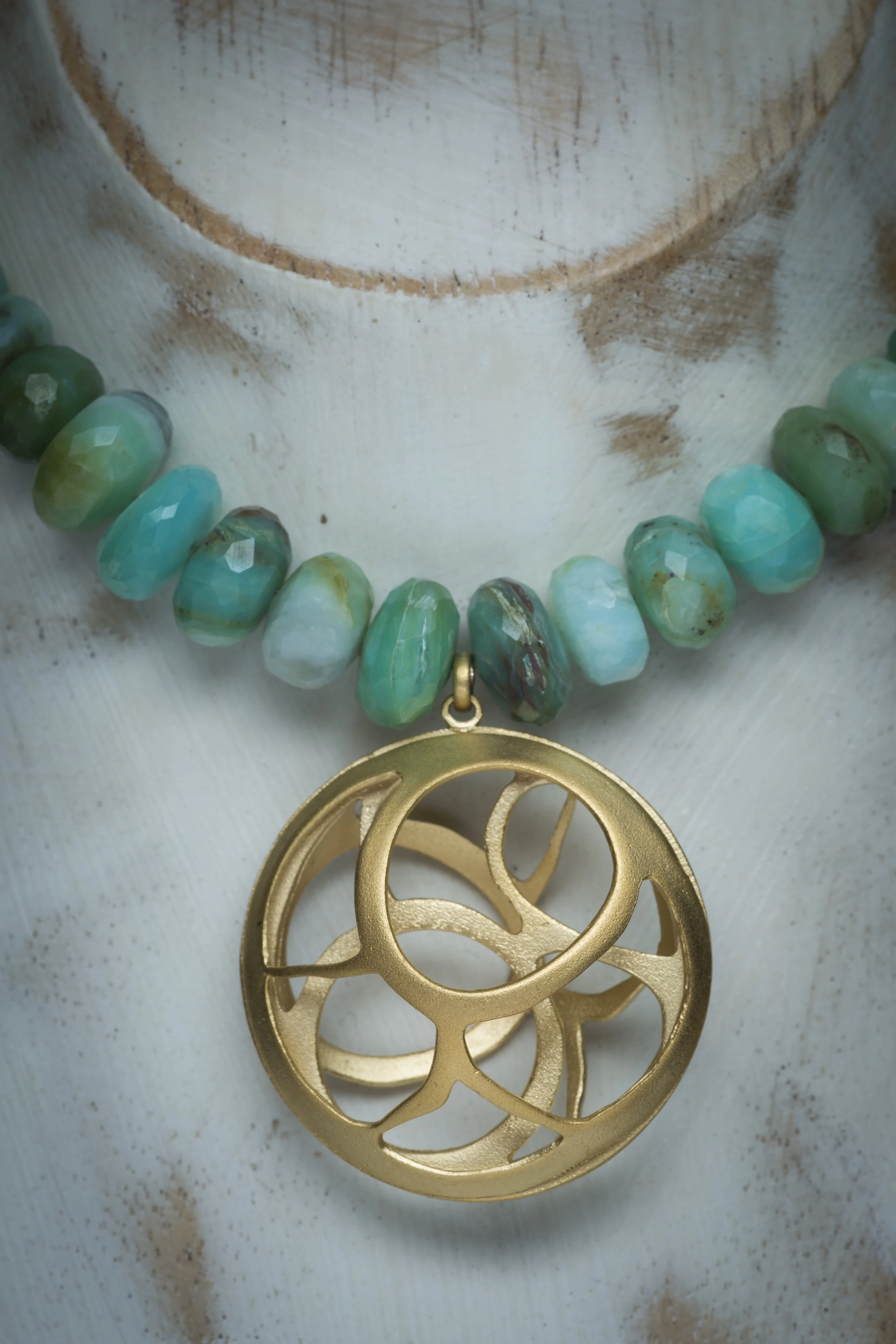 The pieces from the Signature Series are very kinetic~ full of energy. These are the artistic pieces I create~ these are the reaction to this thing called life. It's the good, the bad, and the ugly all rolled up into my being ~ and it manifests itself into beautiful pods and layered metal pieces. The use of the gemstone beads often "fuels" the piece~ pushing the power of the stones to the symbol. We are made up of the same elements found in the Earth and the stars~ the use of these gemstone beads has energy properties~ each different. The healing properties in the gemstones will relax, energize, protect, etc., the wearer.